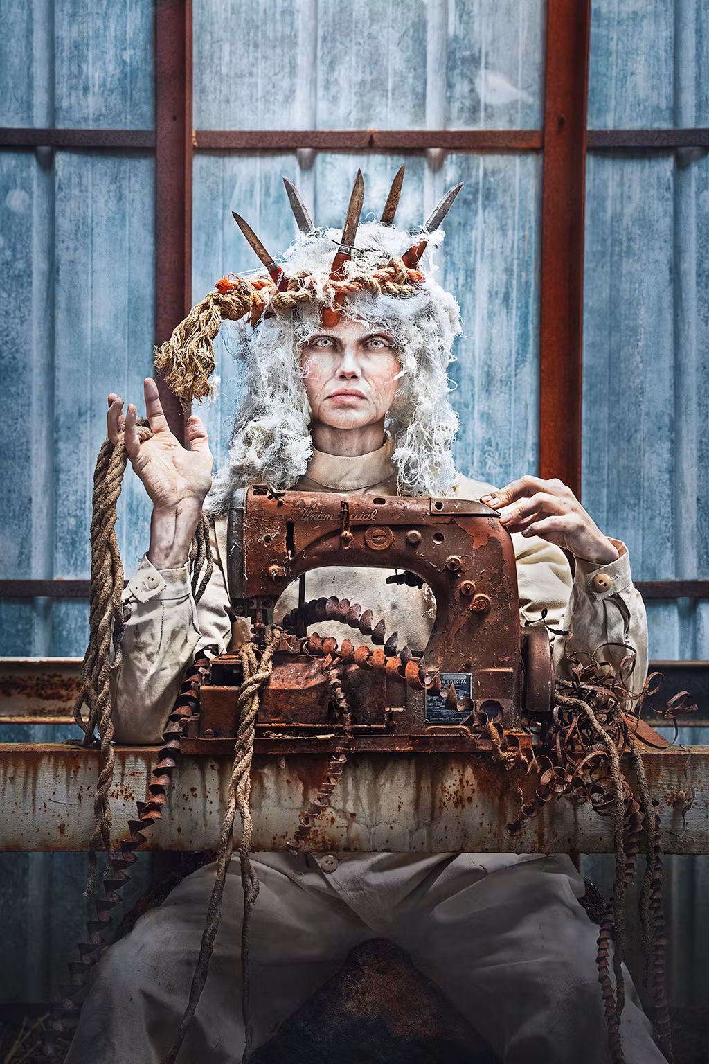 (Nornornas stekheta outfits är sammansatta från skattgömmor i lastutrymme på båt, nedlagd gruva, snickarbod och förbandslåda. )